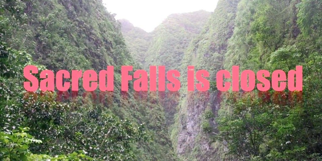 There are Yelp reviews of the hike as recent as last month, and Keely H. of Wahiawa helpfully explains how he got in. And the top Google result for a Sacred Falls search is a post at Exploration Hawaii titled, "How to Get to Sacred Falls." The post was written in 2012.